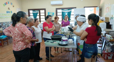 Mujeres del barrio Santo Domingo participaron de una jornada de capacitación gastronómica organizada por el Gobierno Departamental de Itapúa, donde aprendieron la elaboración de panes navideños en el predio de la Iglesia San Miguel.