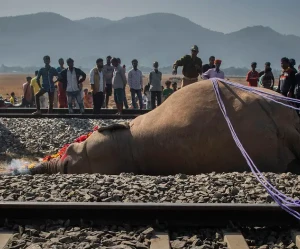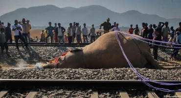 El ferrocarril atropelló a una manada de elefantes. A pesar del accidente, que provocó el descarrilamiento de cinco vagones, ningún pasajero resultó herido.