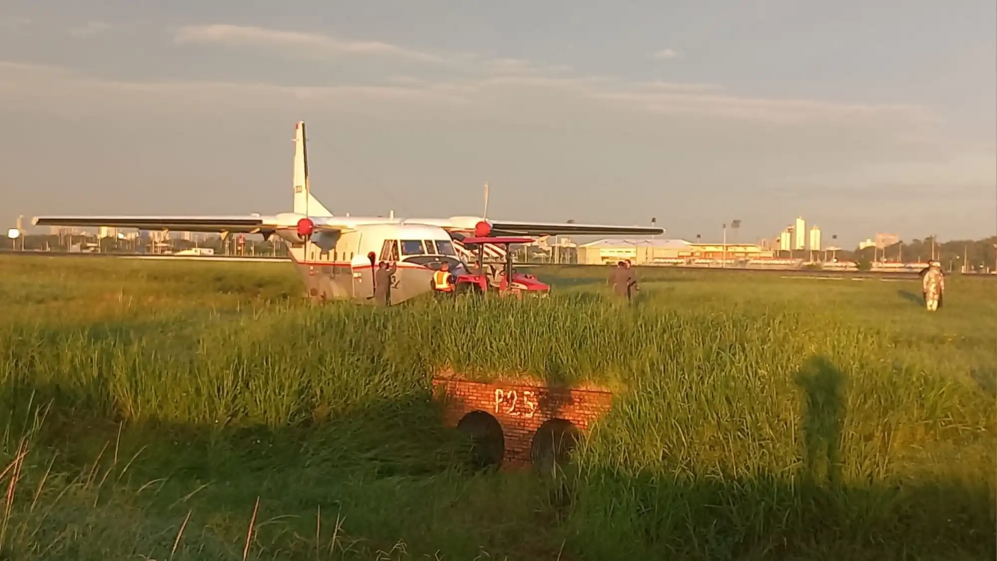 La aeronave fue a parar en un pastizal al costado de la pista de la terminal aérea.