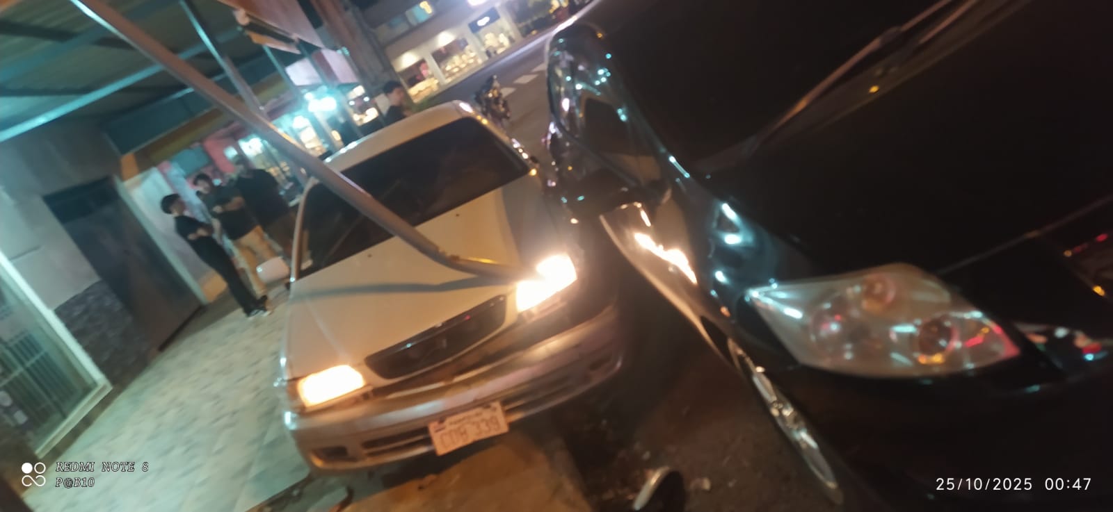 Un accidente de tránsito que involucró a dos vehículos y una estructura comercial se registró en la madrugada de hoy, alrededor de las 00:30 horas, en la intersección de la Avenida General Bernardino Caballero y la Avenida Doctor Gaspar Rodríguez de Francia, sin que se reportaran heridos.