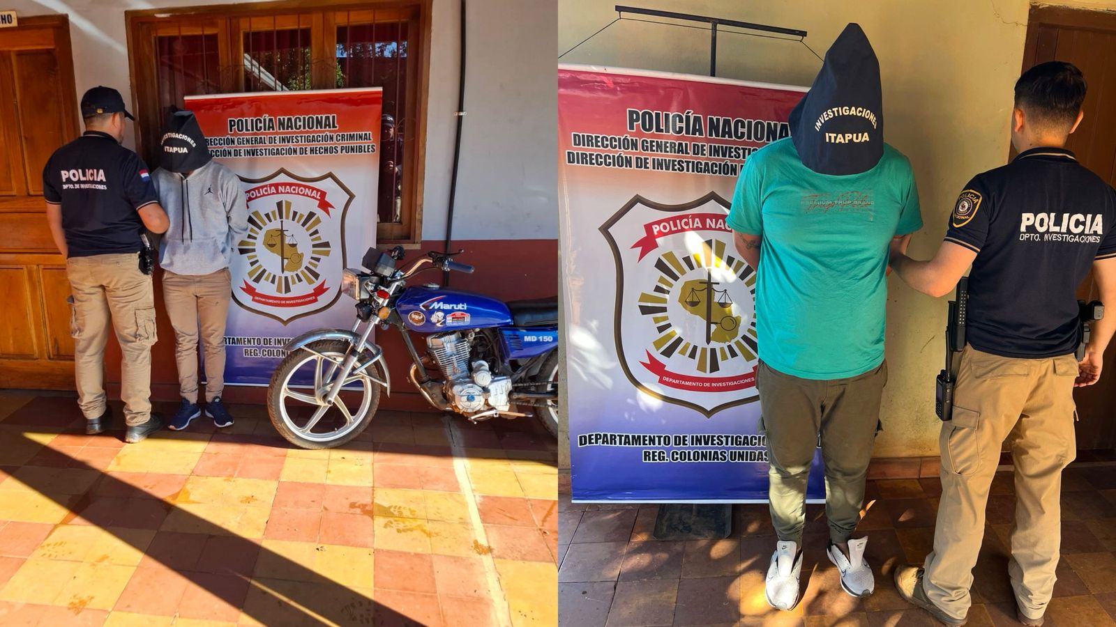 Los procedimientos se realizaron en tres viviendas. En el barrio Santa Lucía de Hohenau se incautó una motocicleta tipo competición marca Star, color rojo. En el barrio Panambí de Obligado fueron incautadas dos motocicletas (una Maruti y una Star), un celular Redmi y una campera negra. Finalmente, en otra vivienda del mismo barrio, perteneciente a la familia Trombetta, se procedió a la detención y aprehensión de los sospechosos y se aseguraron otros elementos de interés para la causa.