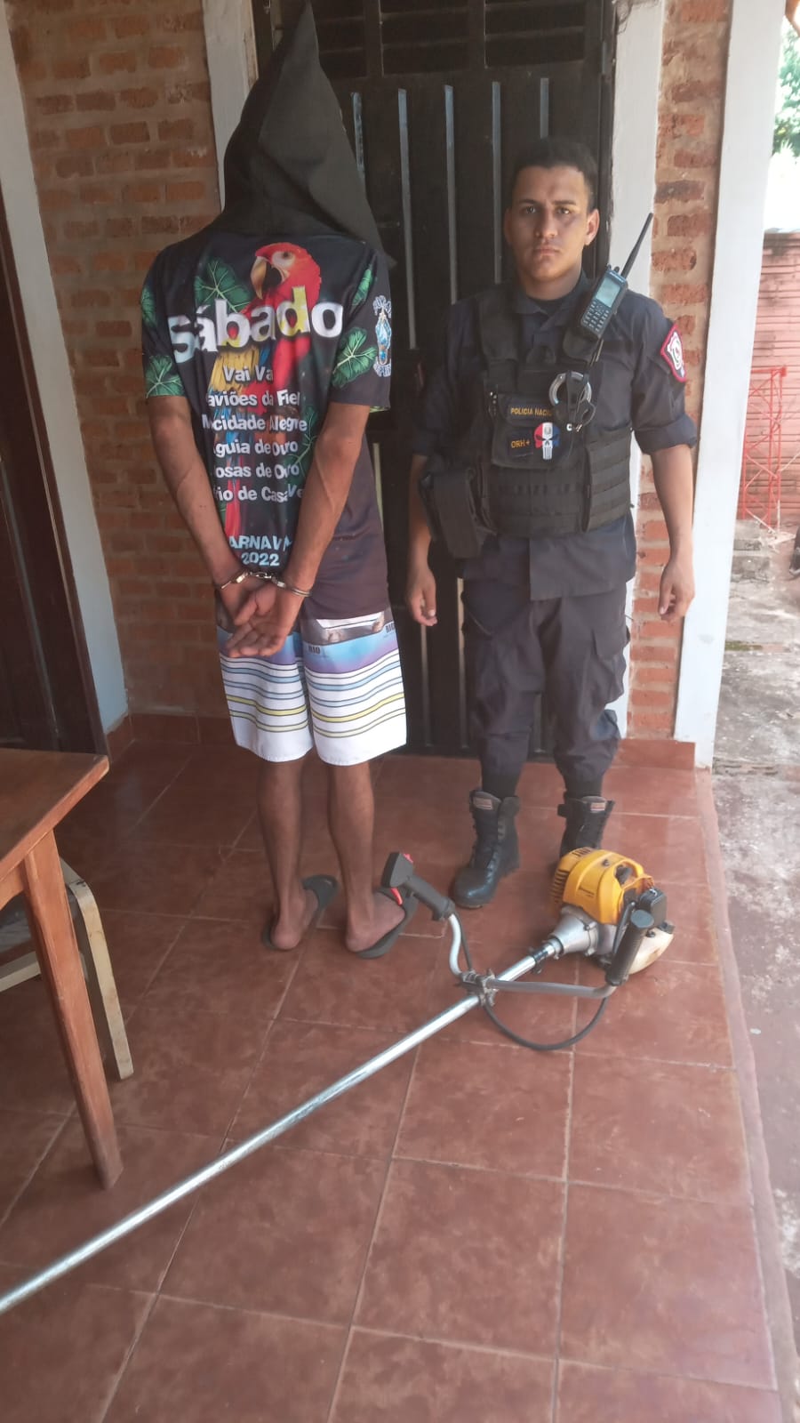 Se trata de Roberto Enrique Villalba Andino, de nacionalidad argentina, 37 años de edad, domiciliado en el barrio Santa María de Encarnación, quien cuenta con antecedentes por hurto. Del poder del mismo fue recuperada una desmalezadora marca Husquarna 220, de color amarillo, denunciada como sustraída.