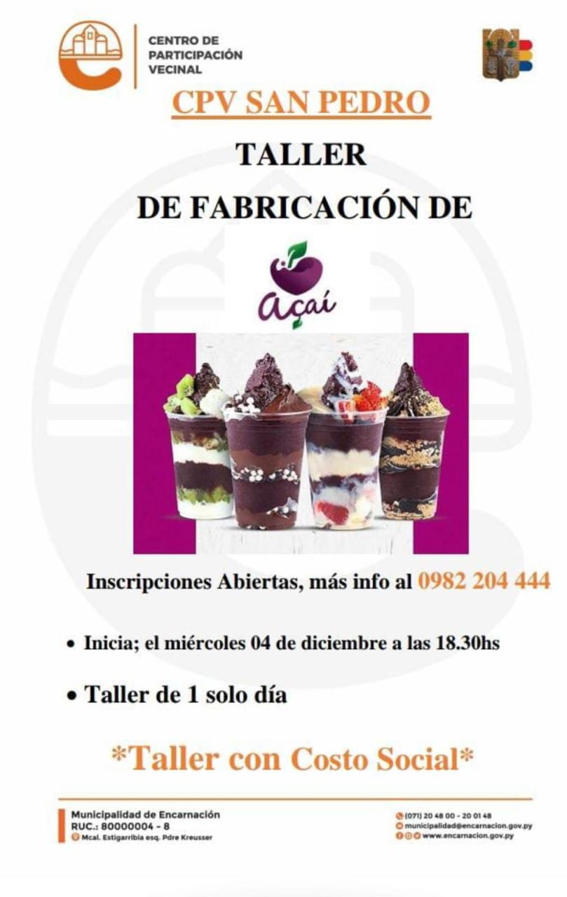 La espera ha terminado. El curso más esperado por todos, "Elaboración de Açai", llega al Centro de Participación Vecinal del Barrio San Pedro de Encarnación.