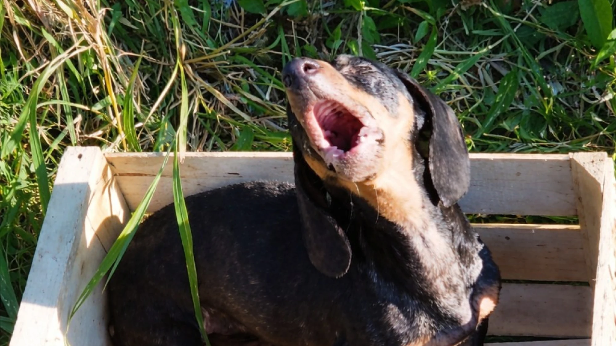 Un perrito salchicha de edad avanzada fue hallado ayer en una situación desgarradora: estaba llorando y aullando dentro de una caja abandonada en una zona de Ñemby.