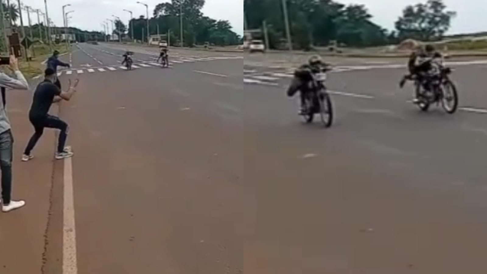 Se ha viralizado unas imágenes donde se observa a unas personas disputando una carrera "clandestina" sobre la Ruta PY01 entre el acceso a los Barrios Itá Paso y Azotea de Encarnación.