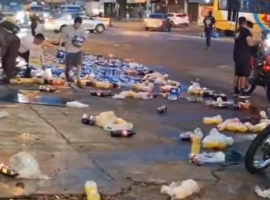 Un accidente se registró esta mañana sobre la ruta PY02, donde un camión transportador de cerveza y gaseosa perdió el equilibrio y las mercaderías. De las bebidas se ocuparon los transeúntes. El chofer se encuentra bien.