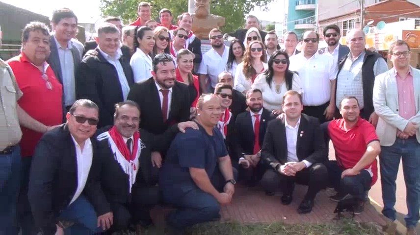 El presidente de la Seccional Colorado 165, Sebastián Remezowski, encabezó un acto conmemorativo en honor al partido Colorado en el busto del General Bernardino Caballero.