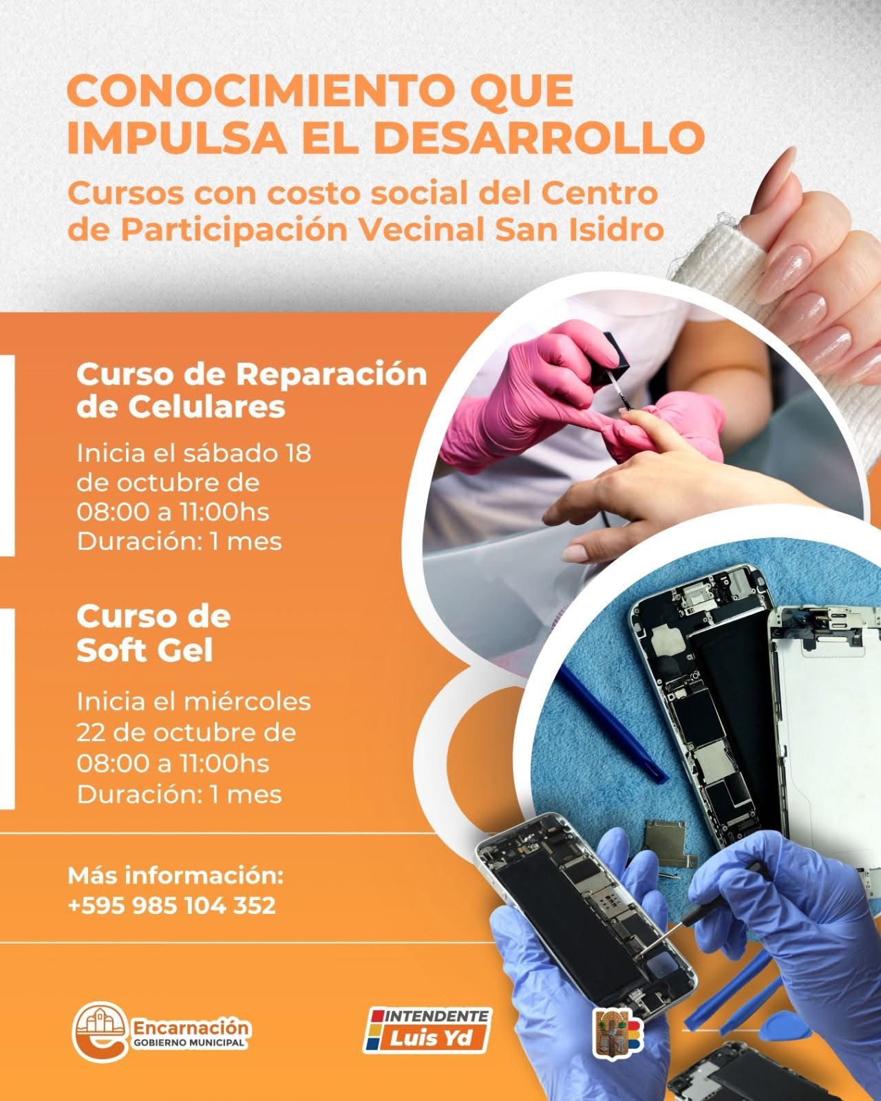Entre las propuestas de formación se destacan los cursos de Reparación de Celulares y Soft Gel, dirigidos a personas interesadas en adquirir conocimientos prácticos y aplicables en el mercado laboral actual.
