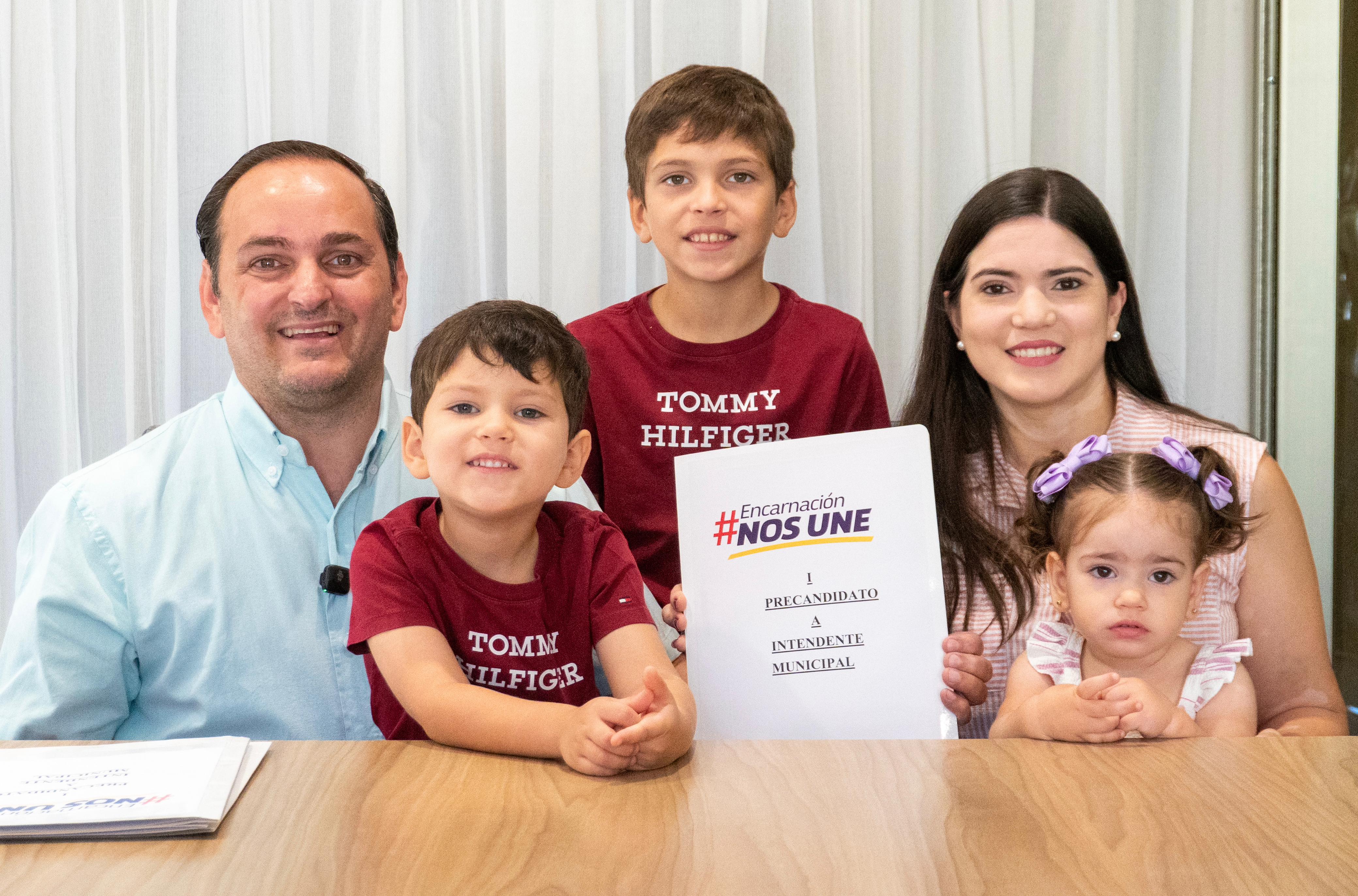 Sebastián “Cheba” Remesowski suscribió la documentación correspondiente para proceder a la inscripción de su precandidatura a intendente por el Movimiento “Encarnación Nos Une”, acompañado de su esposa e hijos.