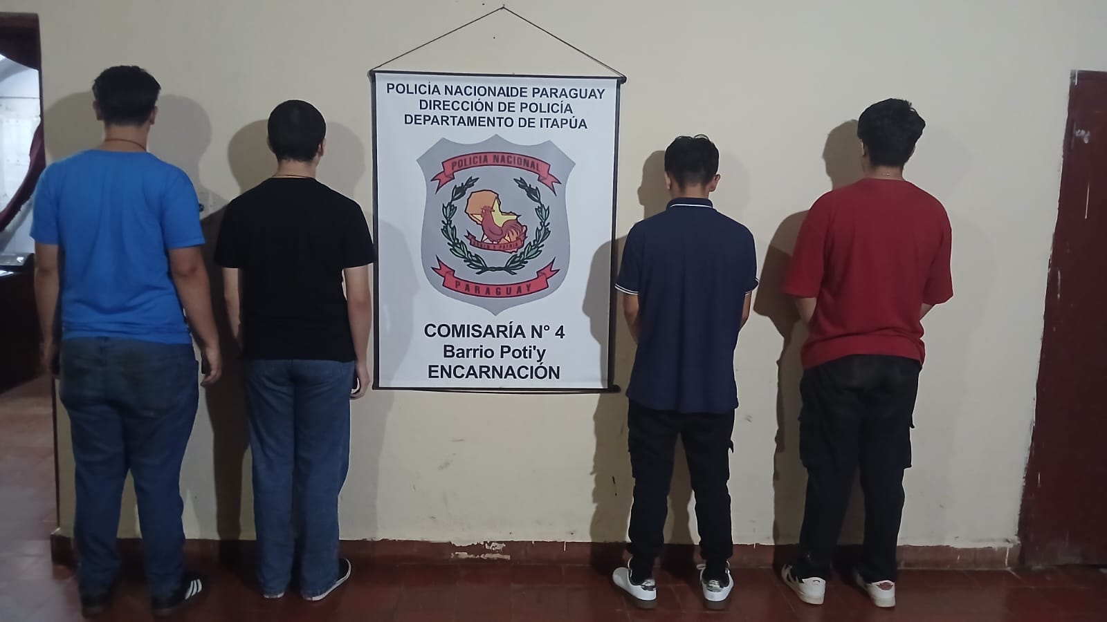En la noche del viernes 20 de febrero de 2026, un grupo de cinco jóvenes fue aprehendido por agentes de la Comisaría Cuarta del barrio Poti'y, en Encarnación, tras una denuncia por supuesta violación de domicilio. El incidente se registró aproximadamente a las 21:15 horas en una propiedad ubicada sobre la calle Juan León Mallorquín casi Jorge Memmel, perteneciente a la señora Gladys Núñez. Según el relato de la propietaria, los sujetos habrían descendido de una camioneta Mercedes Benz de color negro para luego trepar el portón de acceso principal de una vivienda contigua a la suya, la cual pertenecía a su abuela. Ante esta situación, la mujer alertó de inmediato al Sistema 911, lo que derivó en la intervención del personal policial a bordo del móvil 40.