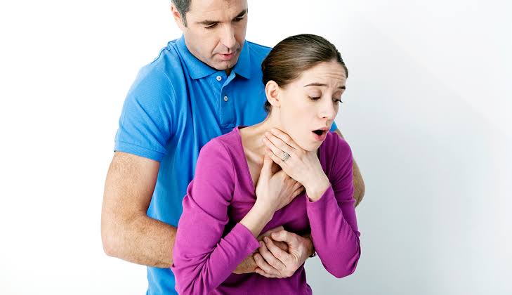 Cuando la persona no puede emitir sonidos, se lleva las manos al cuello, presenta dificultad severa para respirar o comienza a ponerse morada, se debe actuar de inmediato aplicando la Maniobra de Heimlich. Para realizarla, colócate detrás de la persona y rodéala con tus brazos a la altura de la cintura. Cierra un puño y colócalo justo encima del ombligo, sujetándolo con la otra mano. Aplica presiones firmes hacia adentro y hacia arriba hasta que el objeto sea expulsado o la persona pierda el conocimiento.