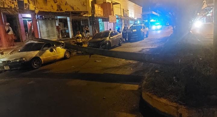 El circuito comercial de Encarnación fue escenario de un aparatoso accidente de tránsito en la intersección de la avenida Bockwinkel y la calle Juana De Lara. Un automóvil Toyota modelo Sienta, de color gris, impactó violentamente contra una columna de alumbrado público en el paseo central, lo que provocó que el poste cayera sobre otro vehículo estacionado, un Toyota modelo Corolla de color blanco.