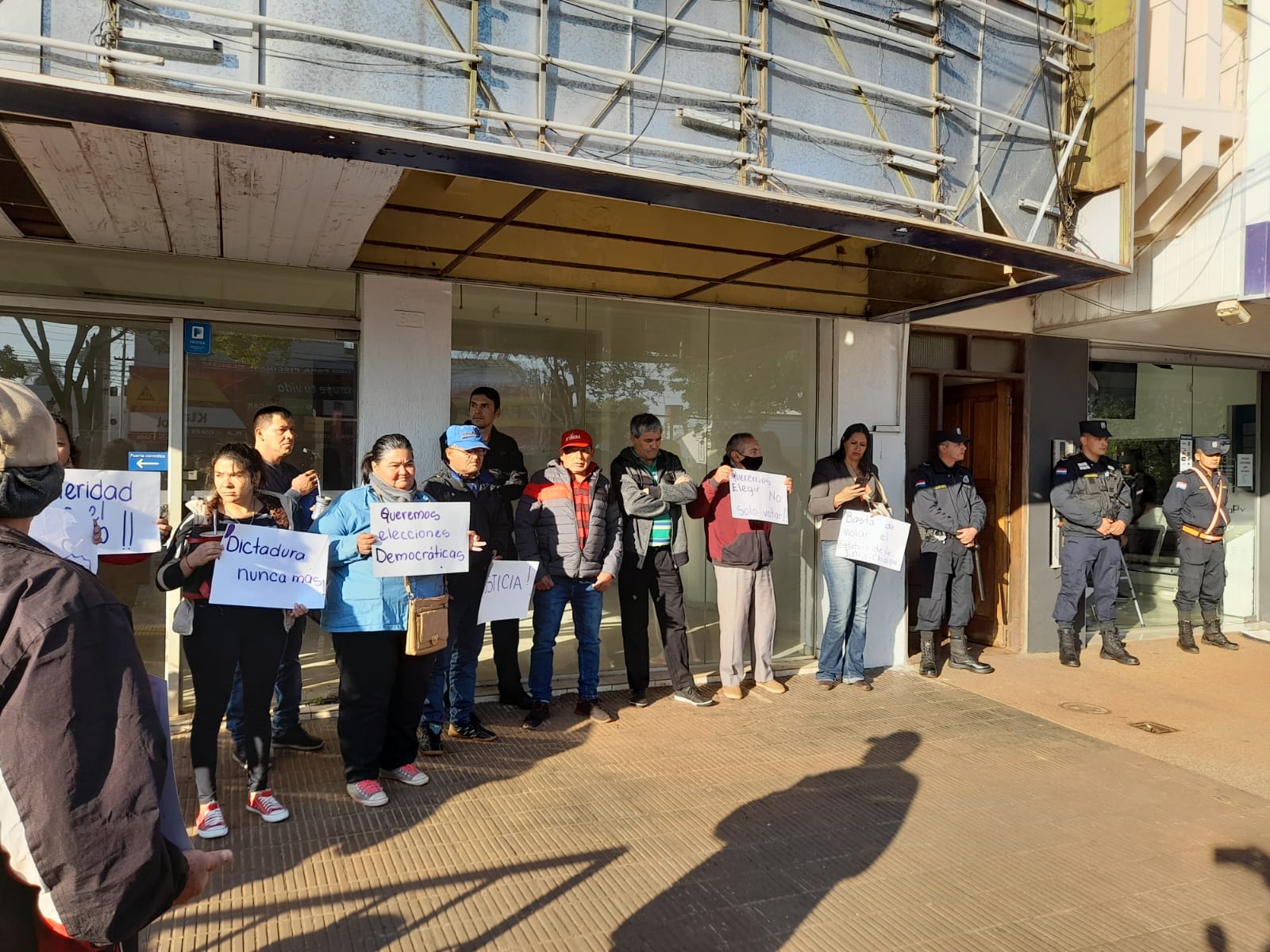 Los pobladores se manifestaron esta mañana frente a la sede local, sobre la avenida Gral. Bernardino Caballero de la capital departamental.