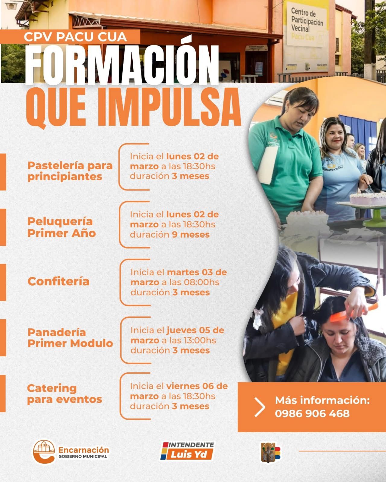 El Centro de Participación Vecinal Pacú Cuá anunció la apertura de inscripciones para una nueva etapa de cursos de formación que comenzarán en el mes de marzo, ampliando así las oportunidades de capacitación para vecinos de la comunidad.