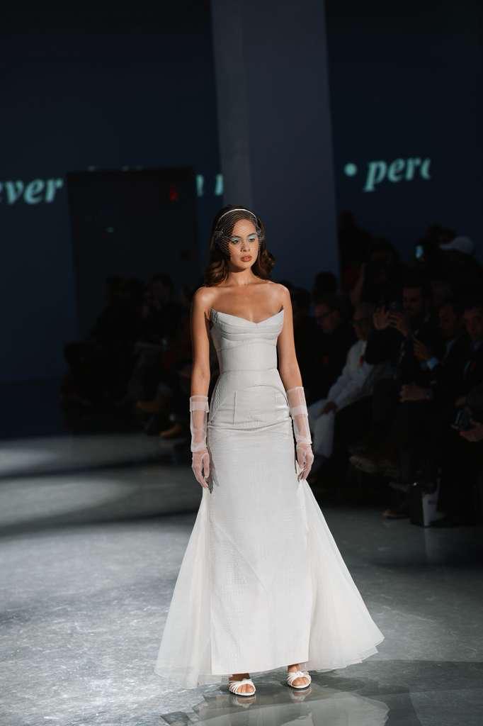 La paraguaya realizó más de una pasada en pasarela, coronando su participación al lucir un impactante vestido de novia del reconocido diseñador colombiano Jorge Duque, pieza que captó miradas y aplausos.
