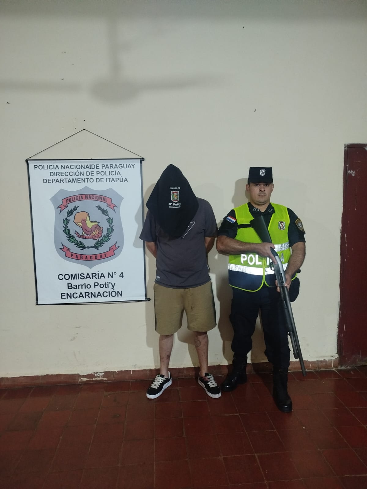 El detenido fue identificado como Herminio Américo Lisboa Bernal, de 34 años, domiciliado en el barrio San Roque de Encarnación. Al consultar sus antecedentes en el Sistema Informático de la Policía Nacional, los agentes confirmaron que pesaba sobre él una orden de captura emitida por la Unidad Penal N.º 5 del Ministerio Público, a cargo de la agente fiscal Rocío Carolina Valdez Florentín.