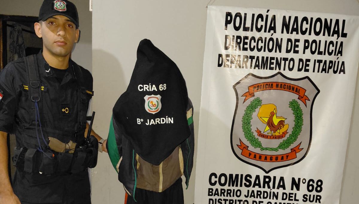 El aprehendido fue identificado como Santiago Raúl Britéz León, de 27 años, residente en el Barrio Chaipé de Encarnación, quien posee antecedentes por hurto agravado en el año 2025.