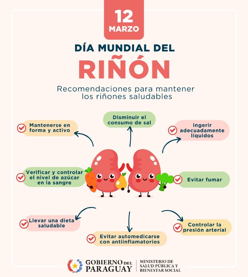 Bajo el lema internacional “Salud Renal para Todos: Cuidando a las Personas, Protegiendo el Planeta”, Paraguay se suma a la iniciativa global promovida por la Sociedad Internacional de Nefrología y la Federación Internacional de Fundaciones Renales, impulsando acciones concretas para fortalecer la atención nefrológica.