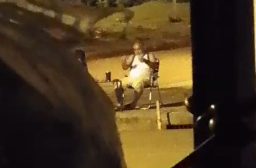 En las imágenes se observa a un hombre, sentado en la vereda de su vivienda, consumiendo bebidas alcohólicas mientras manipulaba aparentemente un arma de fuego tipo revólver, con la que habría efectuado varios disparos al aire,.