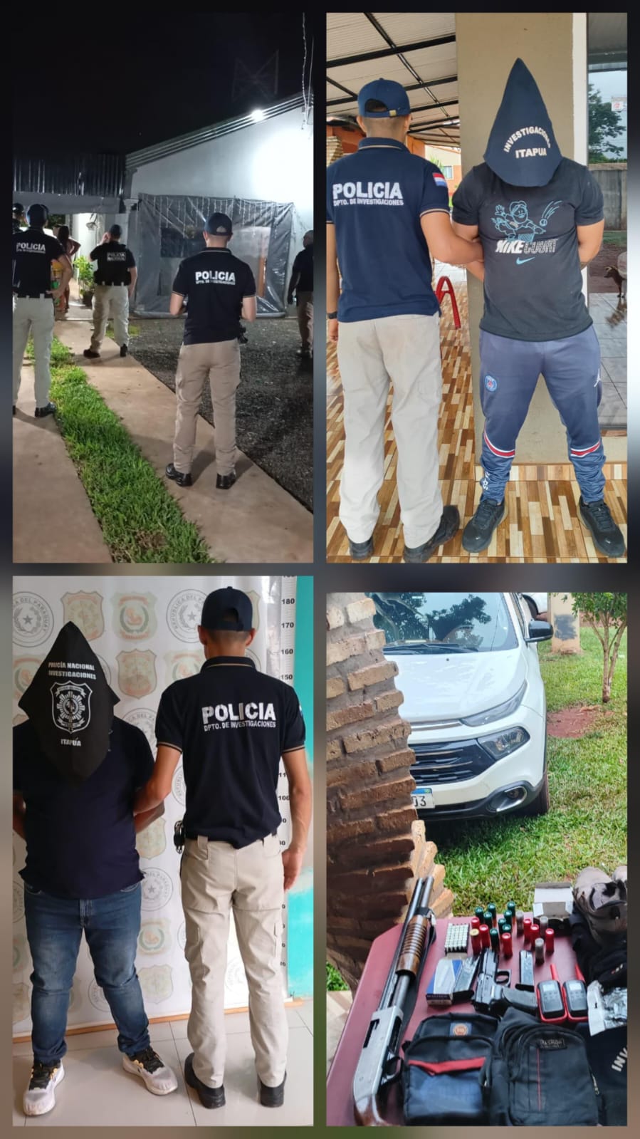 Durante los operativos fueron detenidos Rolando Ariel Martínez Acuña, de 33 años, quien cuenta con antecedentes y prohibiciones por violación a la Ley de Armas, y Enrique Ruiz Díaz Cubilla, de 45 años, quien habría sido detenido anteriormente por hurto de automóvil en Encarnación y por robo agravado.