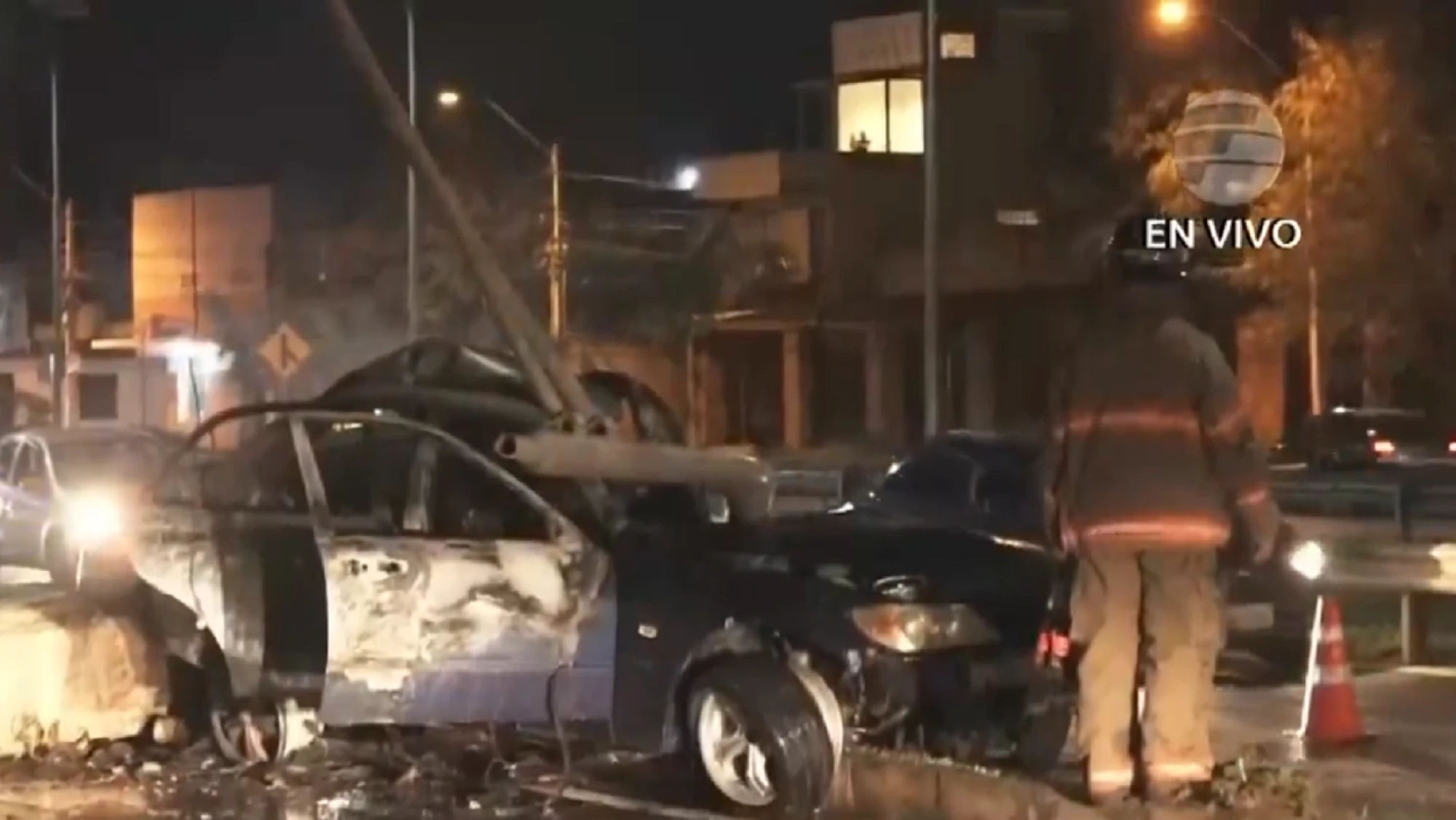En la noche del jueves, un automóvil de la marca Toyota Altezza, con dos ocupantes a bordo, se estrelló contra una columna del alumbrado público y se incendió por completo.