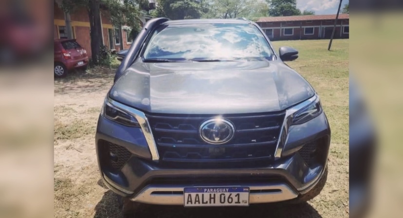 Dicho uniformado iba al mando de un vehículo de la marca Toyota modelo Fortuner SRV color gris, con chapa AALH 061. Al verificar la matrícula, se detectó la misma no correspondía al número de chasis de la camioneta.