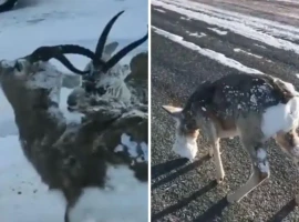 Son varios los vídeos que ya han circulado a través de las redes sociales. En uno de ellos, tres ejemplares de una especie de cabra aparecen completamente petrificadas por congelación. También puede verse a un ciervo con serios problemas para caminar al estar su cabeza completamente congelada. El hombre que graba las imágenes le auxilia y despeja la nieve de sus ojos para que pueda avanzar.