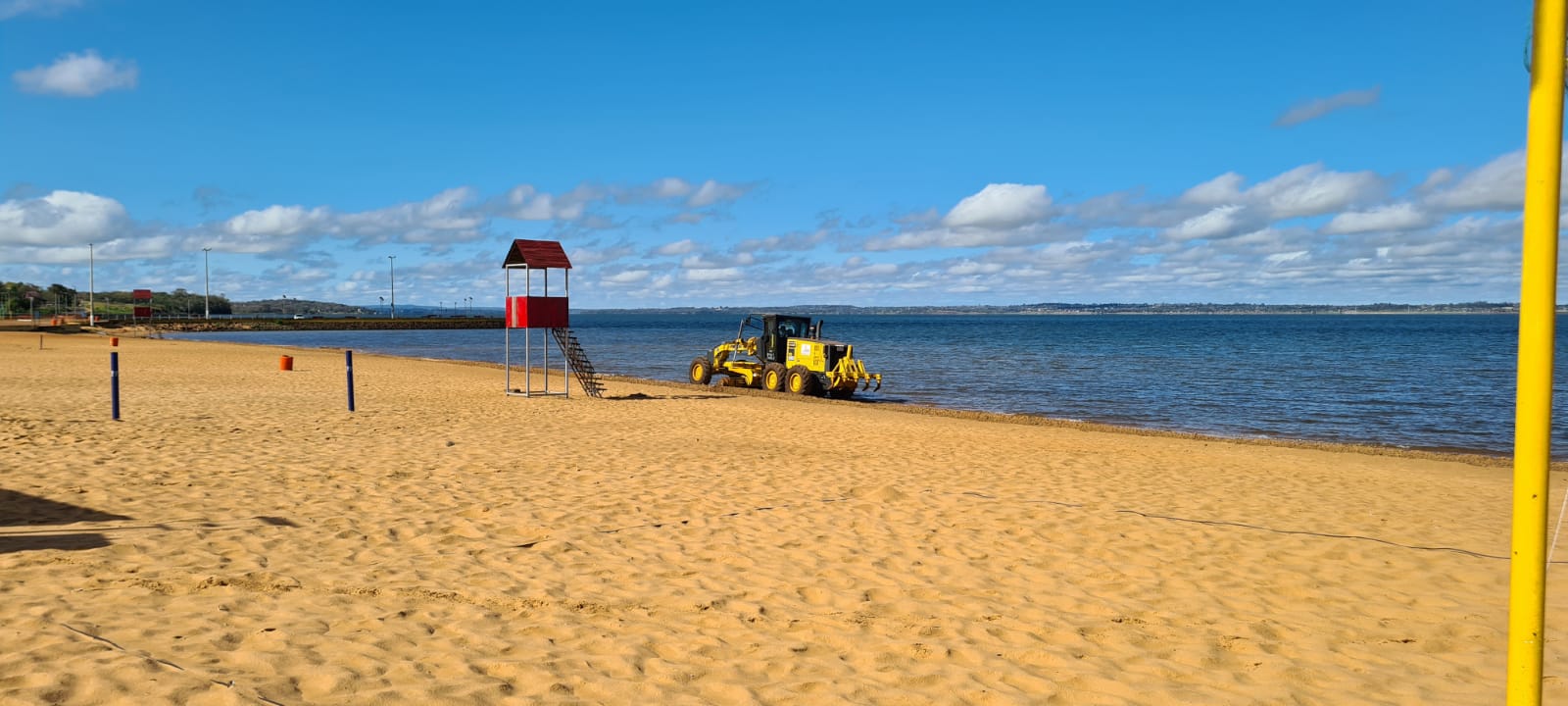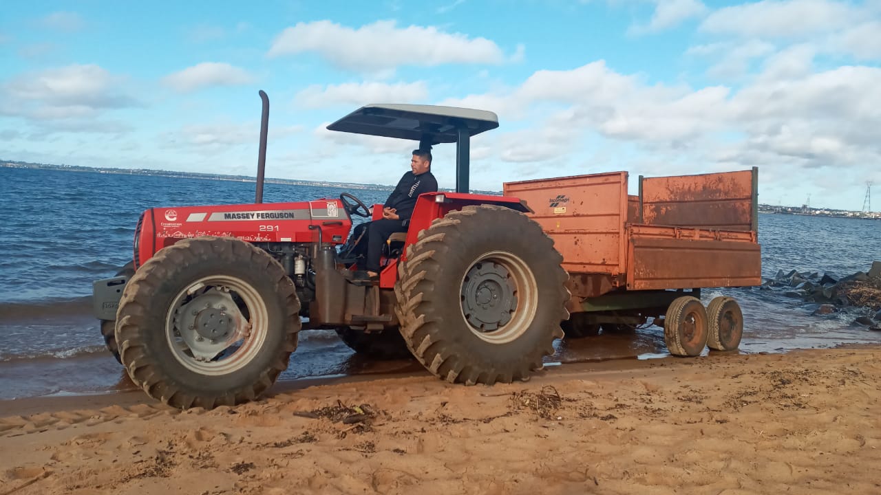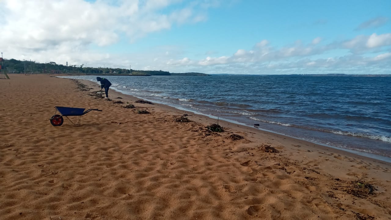Un equipo municipal de obras se encuentra trabajando en la Playa Pacú Cuá del Barrio San Isidro. La tarea incluye un reacondicionamiento general del sector de la arena, la misma forma parte de un plan de mejoramiento de las playas de Encarnación.