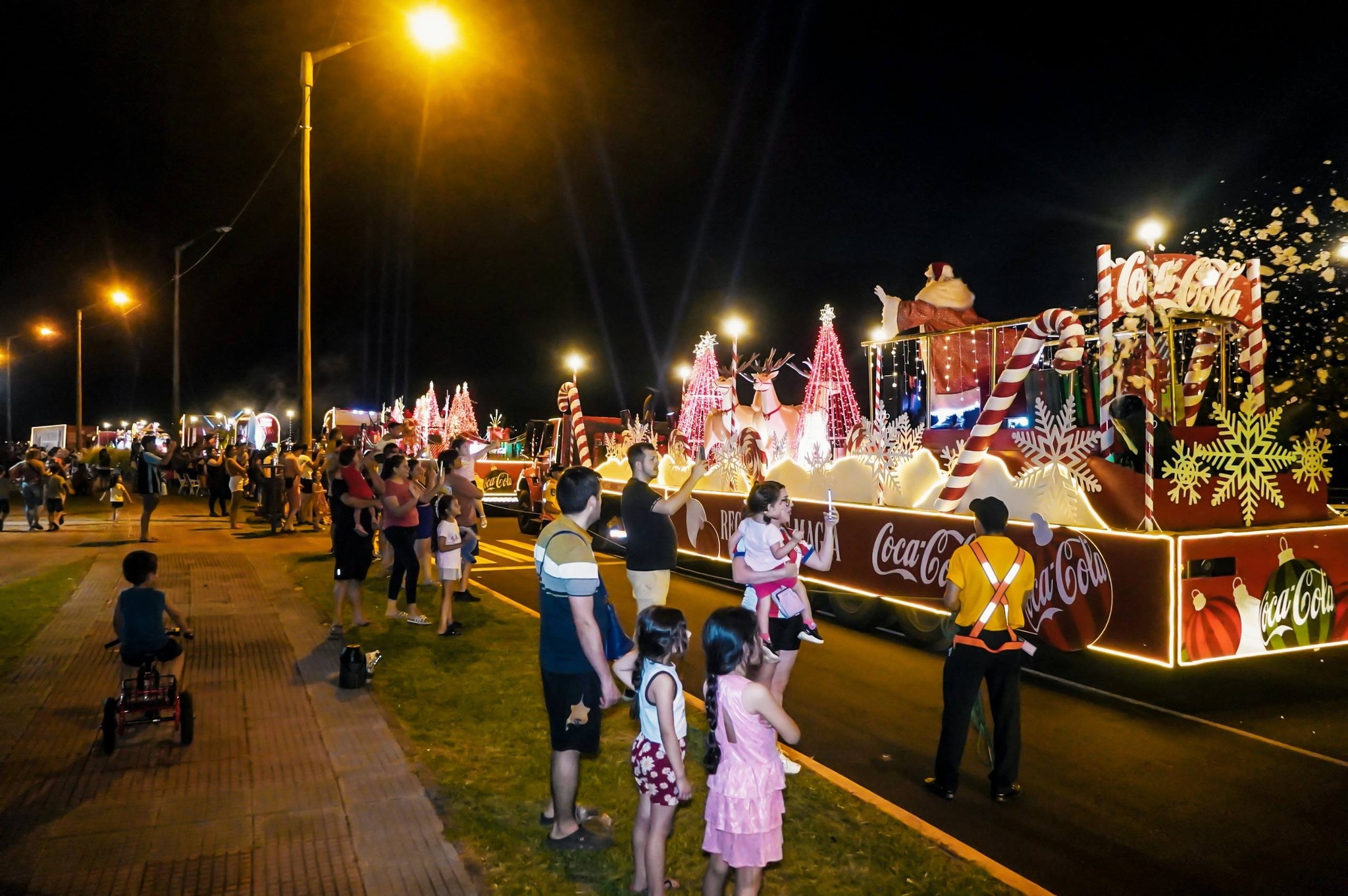Encarnación volvió a vibrar este sábado con una de las postales más esperadas del año: la llegada de la Caravana Navideña de Coca-Cola, que iluminó la ciudad con su clásica combinación de luces, música y alegría. La refresquera eligió nuevamente a la Perla del Sur para desplegar, por segundo año consecutivo, un espectáculo que llenó de color y entusiasmo a grandes y chicos.