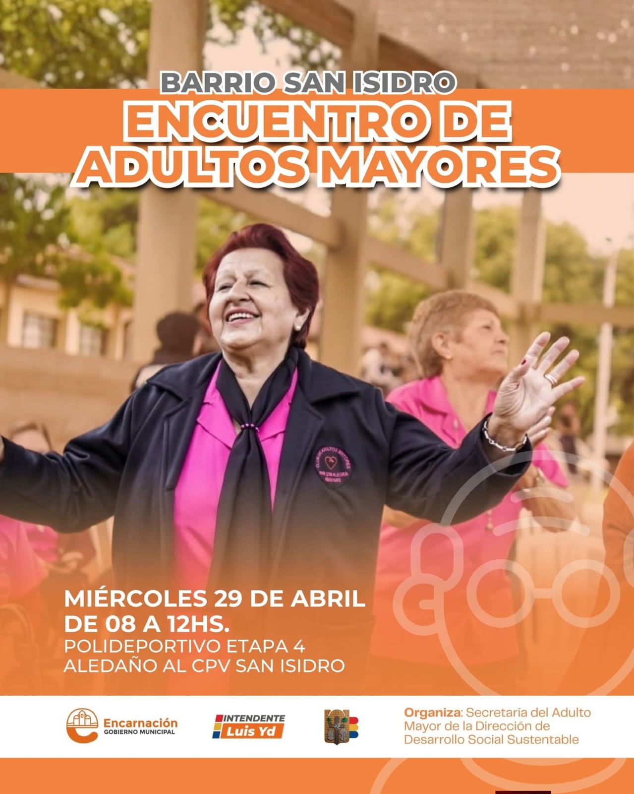 La Municipalidad de Encarnación, a través de la Secretaría del Adulto Mayor dependiente de la Dirección de Desarrollo Social Sustentable, ha anunciado la realización de una jornada de integración destinada a los ciudadanos de la tercera edad en el Barrio San Isidro.
