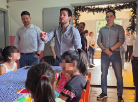 La actividad tuvo lugar en el local situado sobre la avenida Dr. Gaspar Rodríguez de Francia, entre Villarrica y Tomás R. Pereira, donde el titular de la cartera de Estado compartió un emotivo momento con las niñas residentes y entregó obsequios, como gesto de cercanía y acompañamiento del Gobierno Nacional.