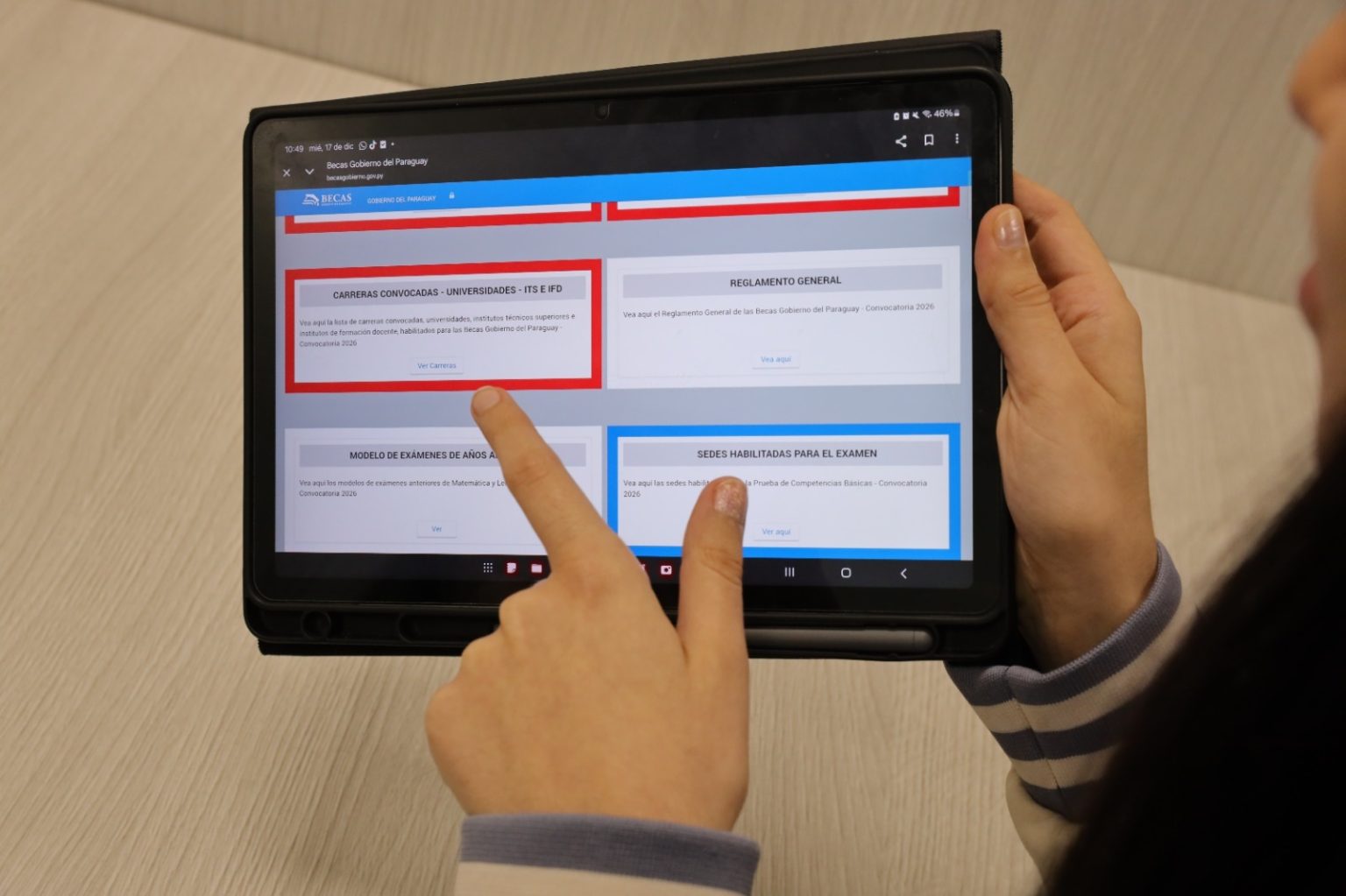 La etapa de postulación para la Convocatoria 2026 del Programa de Becas Gobierno del Paraguay será hasta las 23:59 del 5 de enero próximo, por lo que se insta a los jóvenes a completar el formulario online.