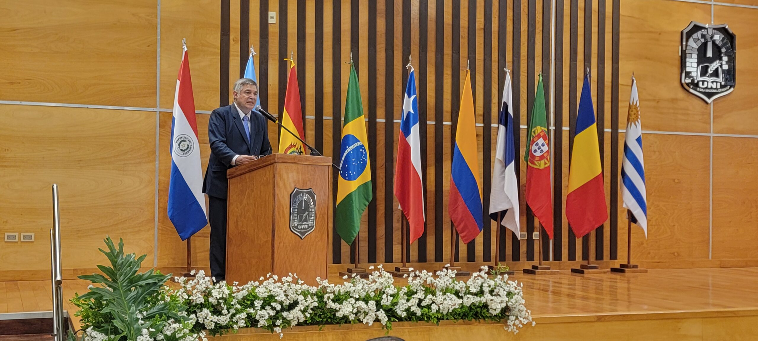 Asimismo, señaló que el Estado avanza en políticas orientadas a garantizar calidad, equidad y acceso, reafirmando la importancia de una educación superior inclusiva y pertinente. Mencionó que la internacionalización y la cooperación regional son factores claves para elevar los estándares académicos y ampliar oportunidades para docentes y estudiantes.