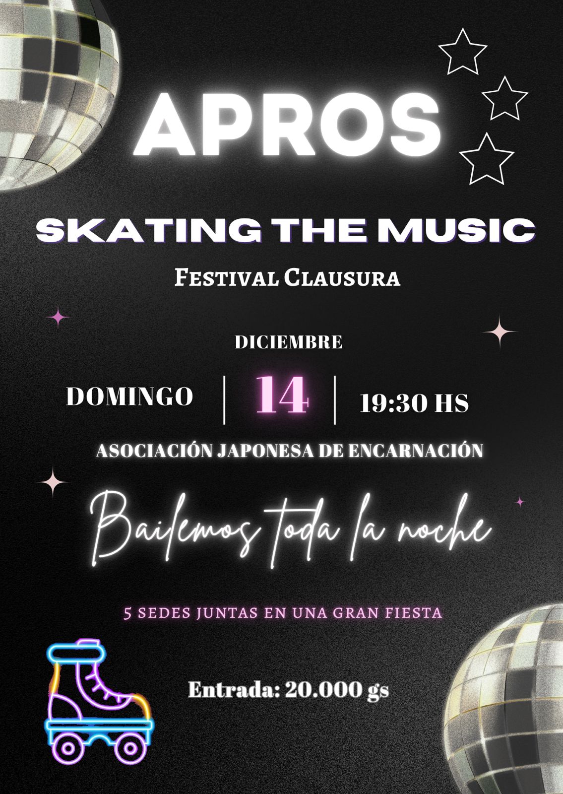 La Academia de Patinaje Rocío Segovia (APROS) anuncia su esperado festival de clausura, titulado “Skating the Music”, que se llevará a cabo el domingo 14 de diciembre a partir de las 19:30 horas en la Asociación Japonesa de Encarnación.
