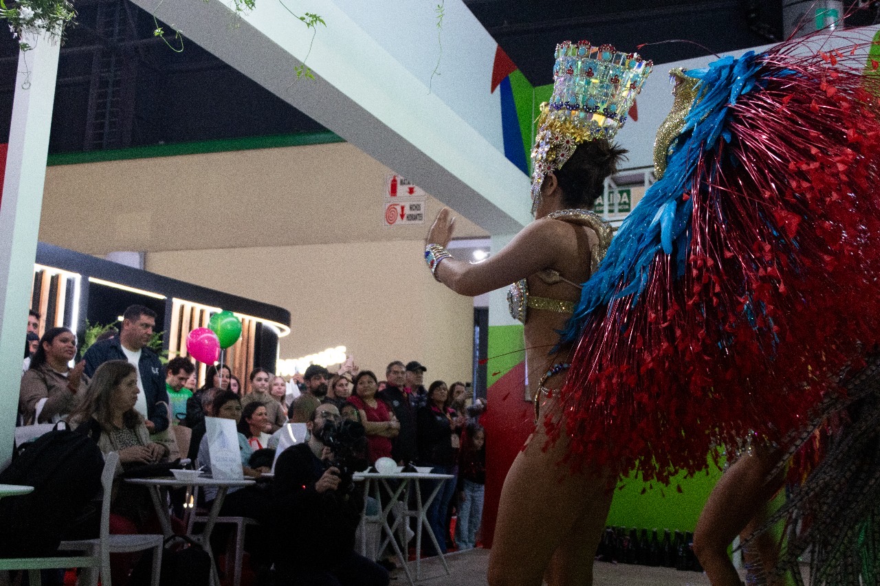 El stand tricolor alberga toda la magia de la mayor fiesta del país, y el público ya disfruta de juegos interactivos, regalos, comidas típicas, fotos con las figuras, clases de samba y muchos atractivos más. Completando la experiencia sensorial, se proyectan imágenes de ediciones anteriores del carnaval. Son aproximadamente 15 marcas nacionales presentes, la mayoría privadas, que se exponen en la mayor feria turística de América Latina.