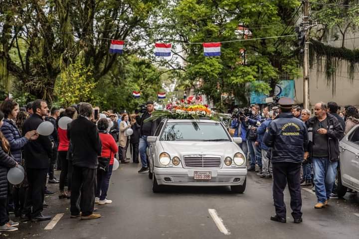 Los restos de Hrisuk pasaron frente al Centro Municipal de Arte, en donde sus allegados con globos blancos en manos, despidieron al recordado impulsor de Un Teatro para Encarnación.