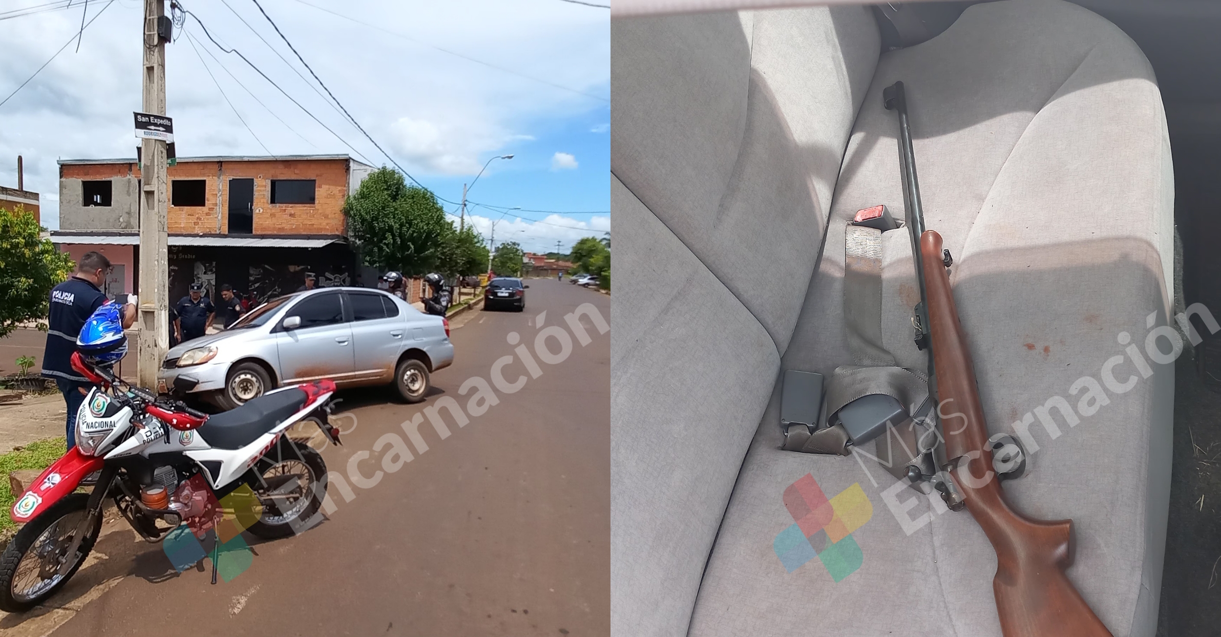 El hecho ocurrió pasada las 12:00 horas en el barrio Espíritu Santo de Cambyretá, la Policía Nacional detuvo a dos hombres acusados de efectuar disparos dentro de un inquilinato. Sin embargo, su intento de escape se vio truncado cuando chocaron en el Barrio Fátima de Encarnación.