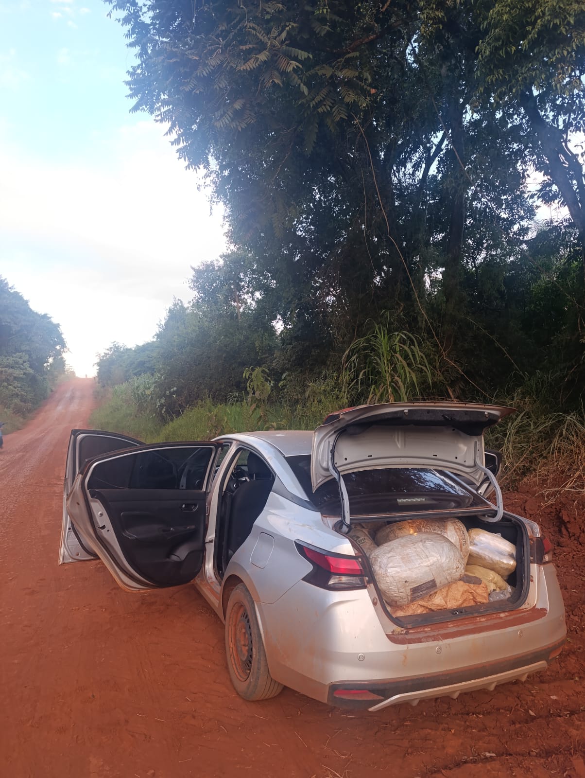 Finalmente, el ocupante abandonó el vehículo e ingresó en una zona boscosa, logrando darse a la fuga. Al inspeccionar el habitáculo del rodado, los intervinientes hallaron varias bolsas arpilleras que contenían una sustancia herbácea, presumiblemente marihuana.