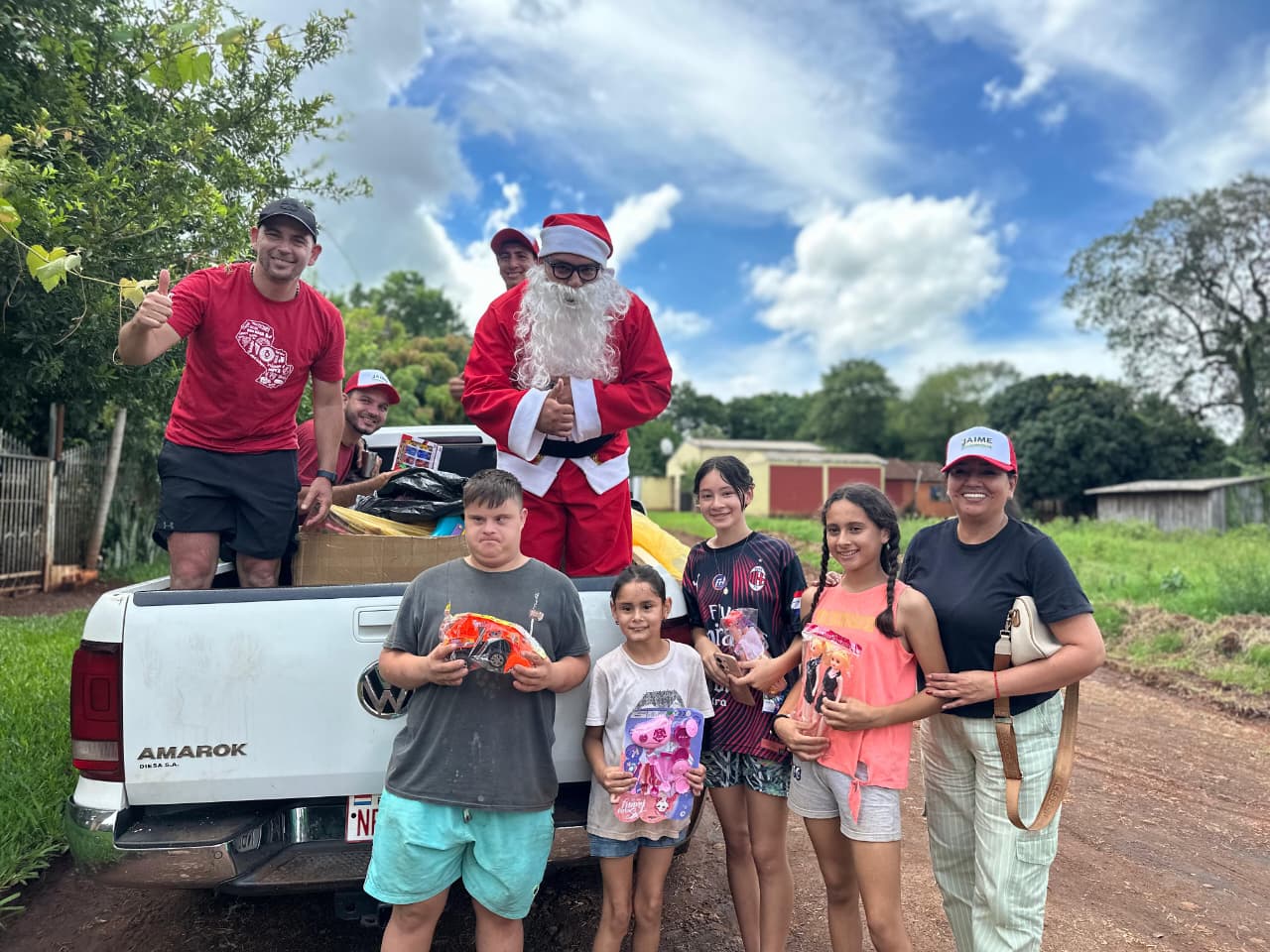 CAMBYRETÁ | Por tercer año consecutivo, la magia de la Navidad se hizo presente en los barrios de Cambyretá, gracias a la iniciativa del Intendente Municipal, Lic. Jaime Hinterleitner. Más de 1.000 niños del distrito vivieron momentos de alegría y emoción con la visita de Papá Noel, quien recorrió diversas calles entregando sonrisas, regalos y mensajes de esperanza.
