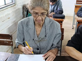 Doña Alejandrina asiste al Centro de Educación de Jóvenes y Adultos N° 11-303. Esta institución pública en Itá ofrece educación permanente. Es una oportunidad para quienes, por diversas razones, abandonaron la escuela.