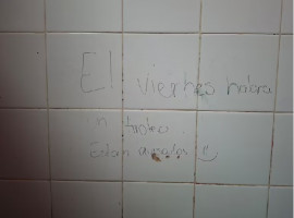 “Tiroteo 17/04/26. No venir por favor”, dice el mensaje escrito a mano en la pared de un baño del colegio Perpetuo Socorro.