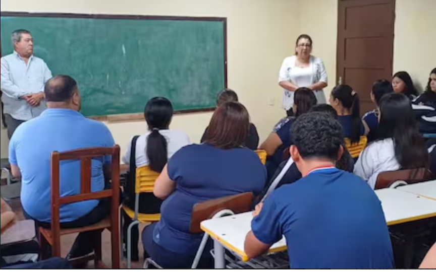 Stella Ayala, secretaria general de la Unión Nacional de Estudiantes, confirmó que ayer utilizaron el horario de clases lo que denominan un conversatorio sobre el proyecto de la reforma de la Caja Fiscal al que lo presentan como inconstitucional.