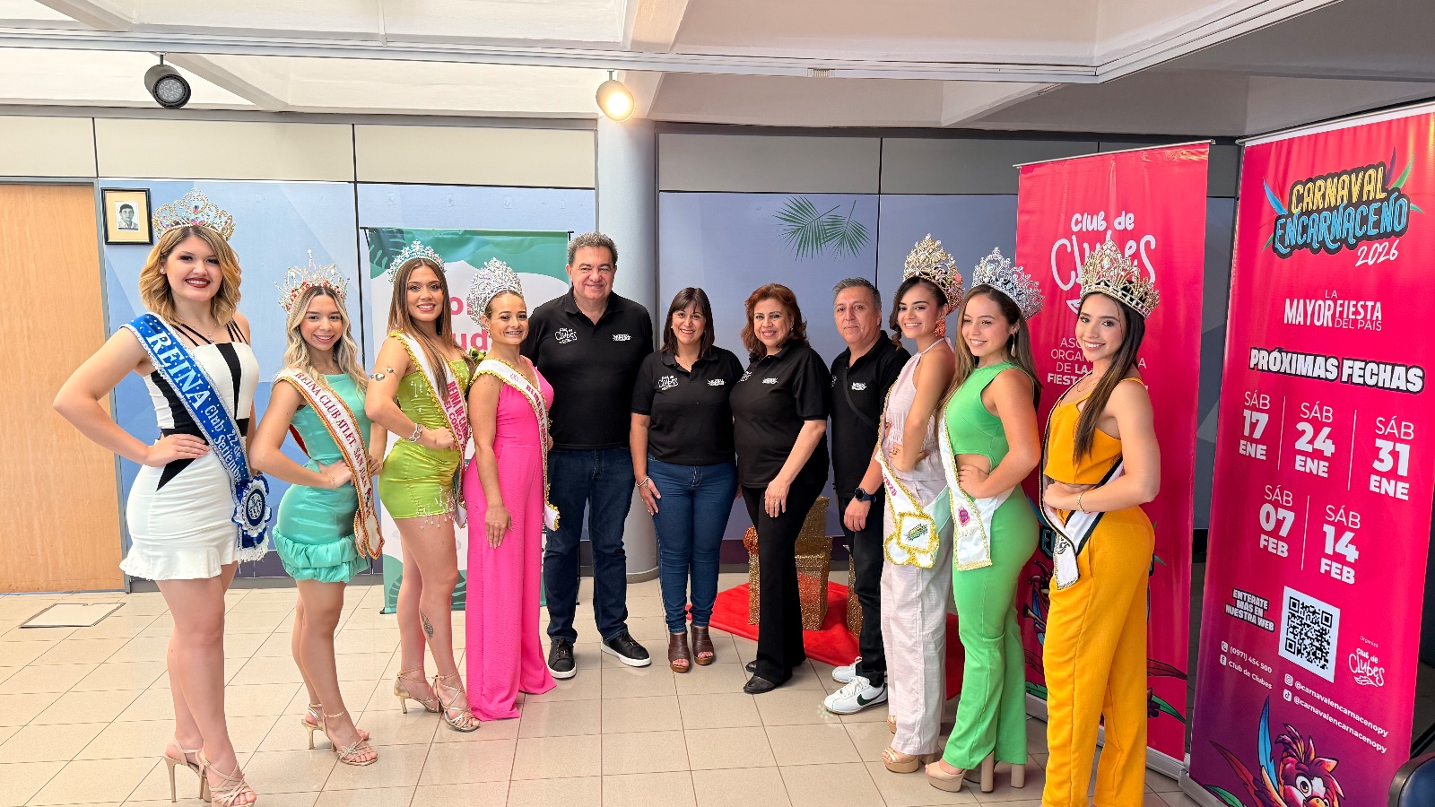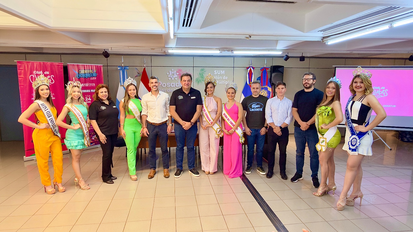 El acto contó con la presencia del Subsecretario de Promoción y Marketing del Ministerio de Turismo de Misiones, Eduardo Scherer; el Director de Turismo e Inversiones de la Municipalidad de Posadas, Lionel Dahir; el Director General de Desarrollo Económico, el contador Nicolás; y el Director de Turismo Municipal de Posadas, Jonathan Rodríguez. También participaron representantes de Encarnación como Eduardo Florentín, presidente del Club de Clubes; Telma Lesme, presidenta del Club 22 de Septiembre; y la magíster Élida Bartonchelo, directora de Cultura y Turismo de la Entidad Binacional Yacyretá, junto a reinas y figuras destacadas de los clubes de Encarnación.