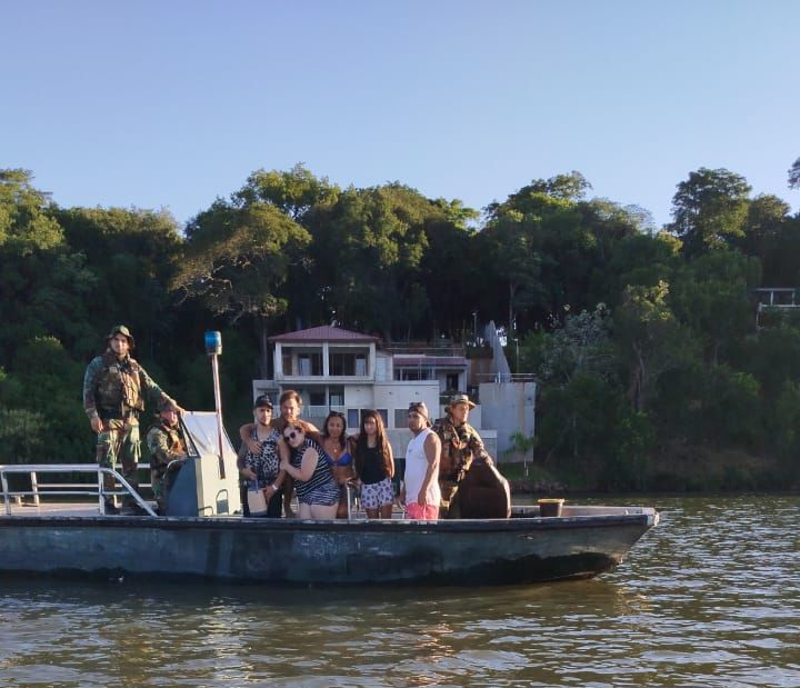 Según el informe oficial, la embarcación, proveniente del lado de la República Argentina, transportaba a seis tripulantes: tres hombres y tres mujeres, una de ellas aparentemente menor de edad. Todos serían de nacionalidad argentina, aunque al momento del procedimiento no se contaba con mayores datos personales. Tras el naufragio, los ocupantes quedaron a la deriva, lo que motivó el despliegue inmediato de un operativo de búsqueda.