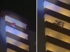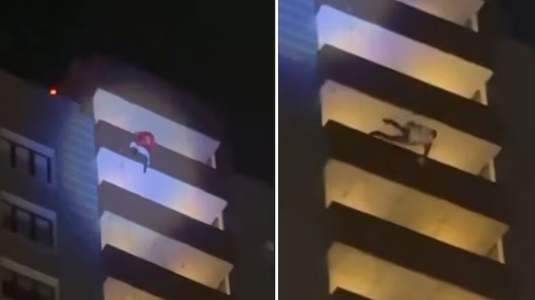 El video se viralizó en la red social X (ex Twitter). En el mismo, se puede ver al hombre intentando trepar el balcón para bajar hacia el vigésimo cuarto piso a través de un cable de seguridad. Sin embargo, no pudo encontrarlo y terminó cayendo desde gran altura.