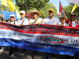 La Intersindical de Trabajadores de la que forman parte la OTEP y otras 22 organizaciones convocaron a una manifestación nacional con paro de actividades en todos los niveles y modalidades con tres turnos en todo el país.