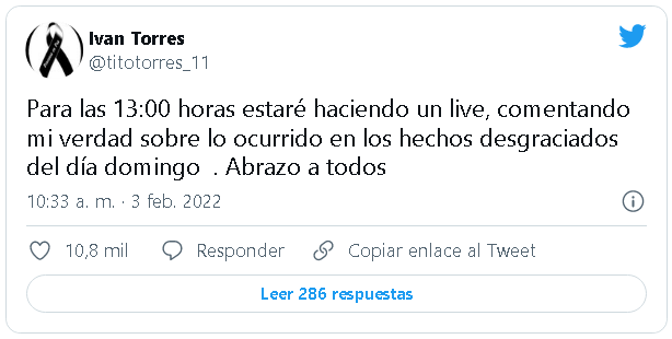 El futbolista Iván Tito Torres anunció que a las 13.00 de este jueves dará su verdad sobre lo ocurrido en el Ja'umina, el domingo pasado.