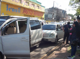 En la mañana de este jueves se registró un accidente de tránsito en cadena sobre la avenida Bernardino Caballero, en la intersección con Lomas Valentina. El siniestro involucró a tres vehículos: una furgoneta Hyundai con chapa WHFL 963, un automóvil Toyota con chapa AAMG 511 y otro vehículo Hyundai con chapa AAHP 099.