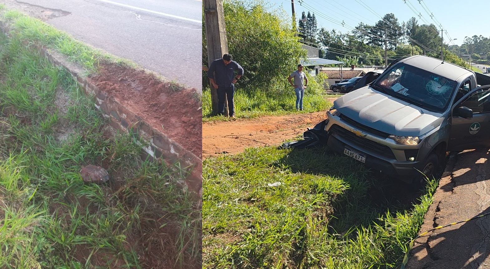 Personal policial, a bordo de la patrullera M-300, acudió al lugar tras recibir el aviso y encontró una camioneta de la marca Chevrolet, modelo S10 CS Work 2.8 4x4, color plata, con matrícula AAYS 671, inscripta a nombre de la firma Agrofertil S.A., con visibles daños materiales y ubicada al costado de la ruta.