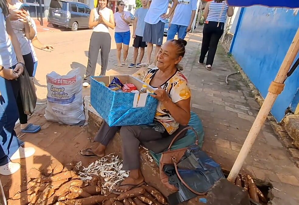 En ese sentido, los estudiantes ayudaron a una humilde abuelita de 73 años de edad, quien hace 32 años se dedica a la venta de mandioca, en una esquina en esta ciudad.